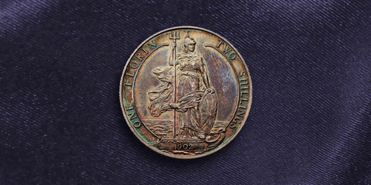Edward VII florin reverse featuring an image of Britannia