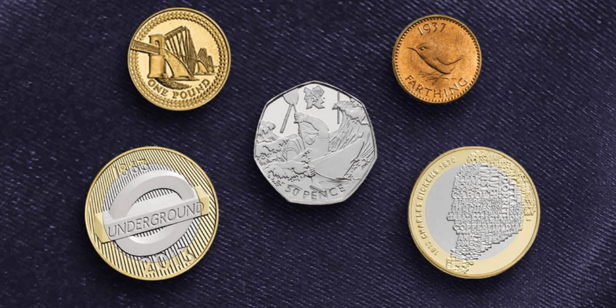 A variety of United Kingdom coin reverses